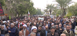 در بندر بوشهر عزاداران برسرو سینه زنان مسیر بلوار امام خمینی (ره) از مقابل ناحیه مرکزی بسیج را تا مصلای نمازجمعه پیمودند و نماز میت را به امامت نماینده ولی فقیه در استان و امام جمعه بوشهر اقامه کردند .