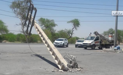 سقوط ۲ پایه بتونی شبکه برق بر اثر برخورد خودرو باعث قطع برق تعدادی از روستا‌های حاشیه اهواز شد.